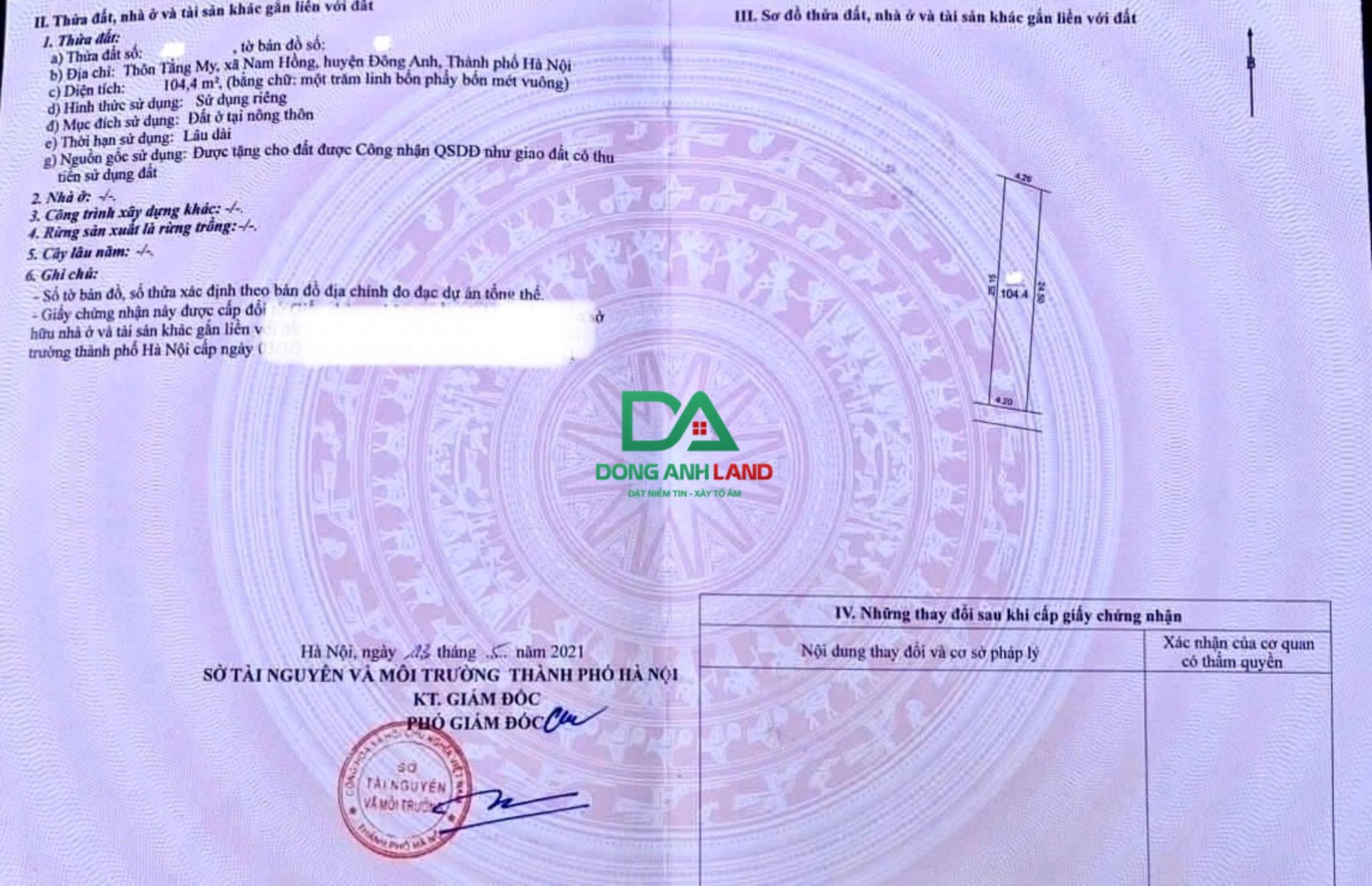 Diện tích 104.4m2, mặt tiền 4.2m