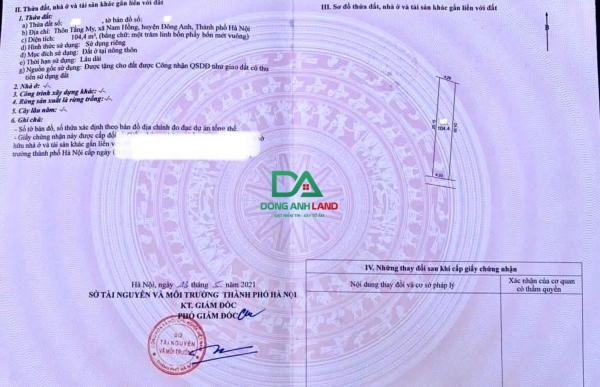 Bán 104.4m đất Nam Hồng Đông Anh - vị trí vỏ làng thôn Tằng My