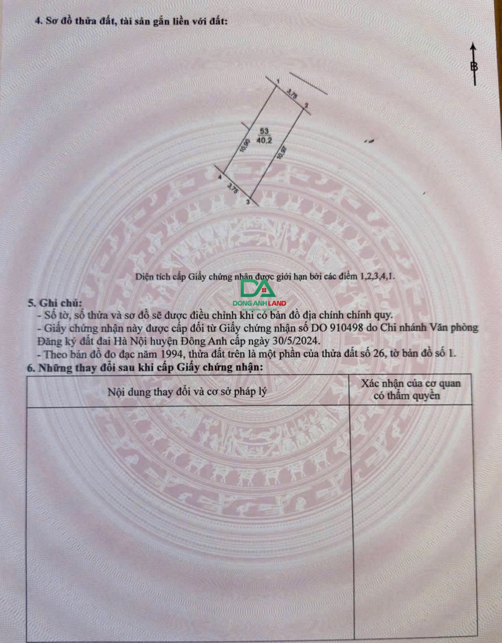 Diện tích 40m2. Mặt tiền 3.75m