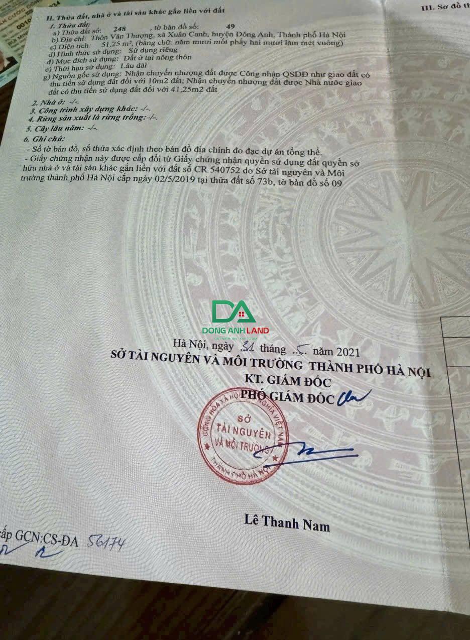 Bán 51,25m đất Văn Thượng Đông Anh gần Vinhomes Cổ Loa giá 5,x tỷ