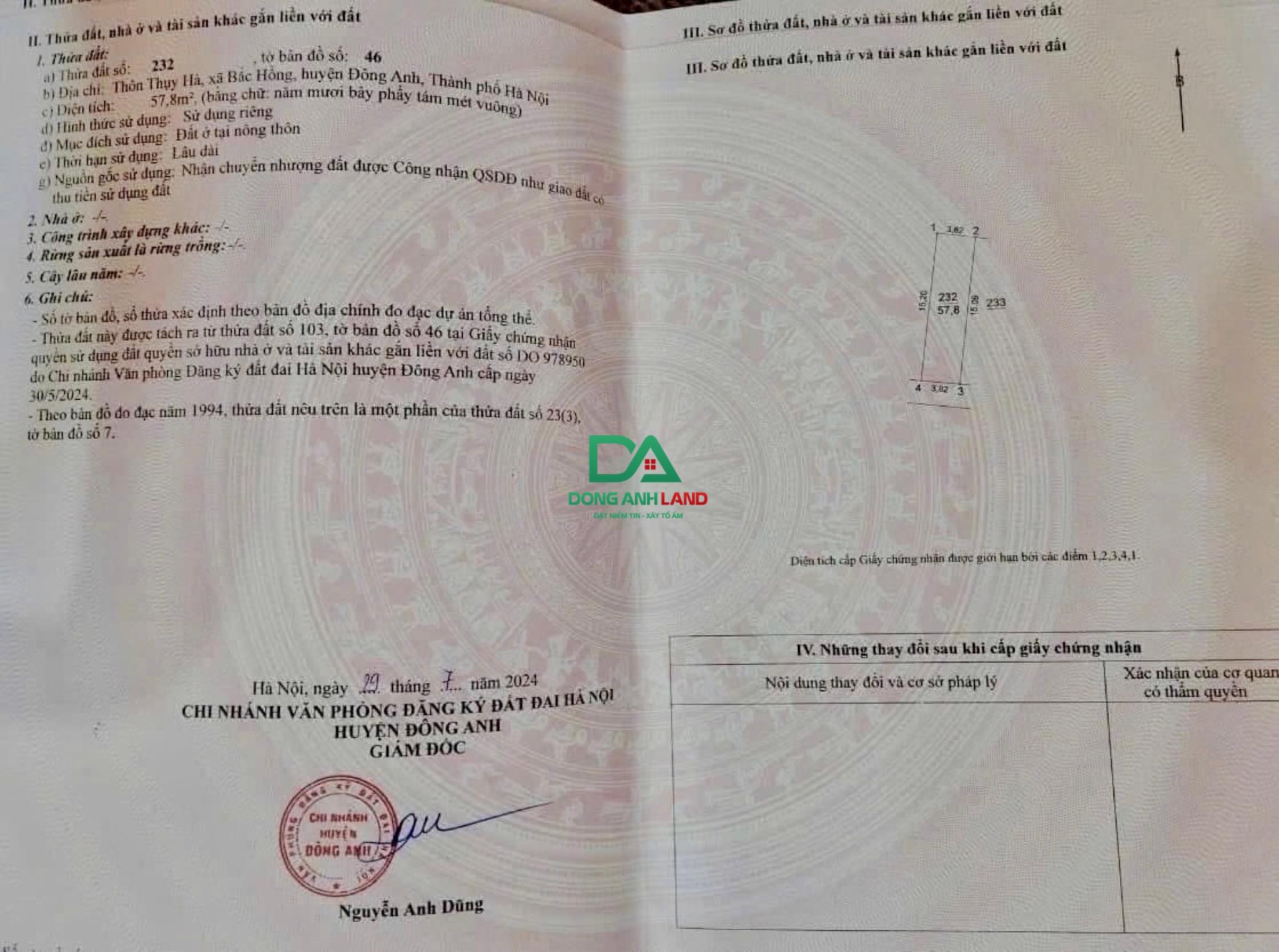 Bán 57.8m đất Thuỵ Hà Bắc Hồng Đông Anh gần Vinhomes Bắc Hồng