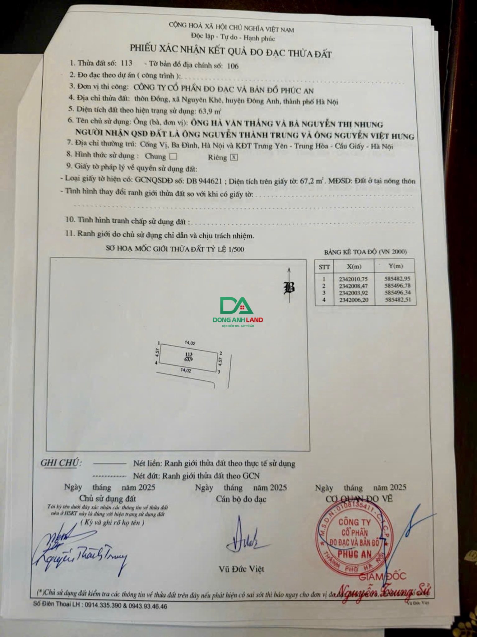 Bán lô góc 63,9m thôn Đồng Nguyên Khê Đông Anh
