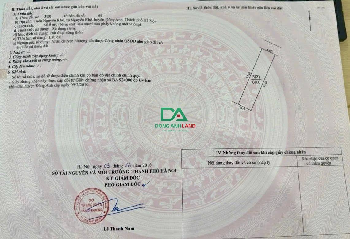 Tên : Lô 68m2 xóm 3 Nguyên Khê