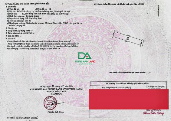 Bán 89.2m đất Kính Nỗ Uy Nỗ gần khu phức hợp thể thao Đông Anh