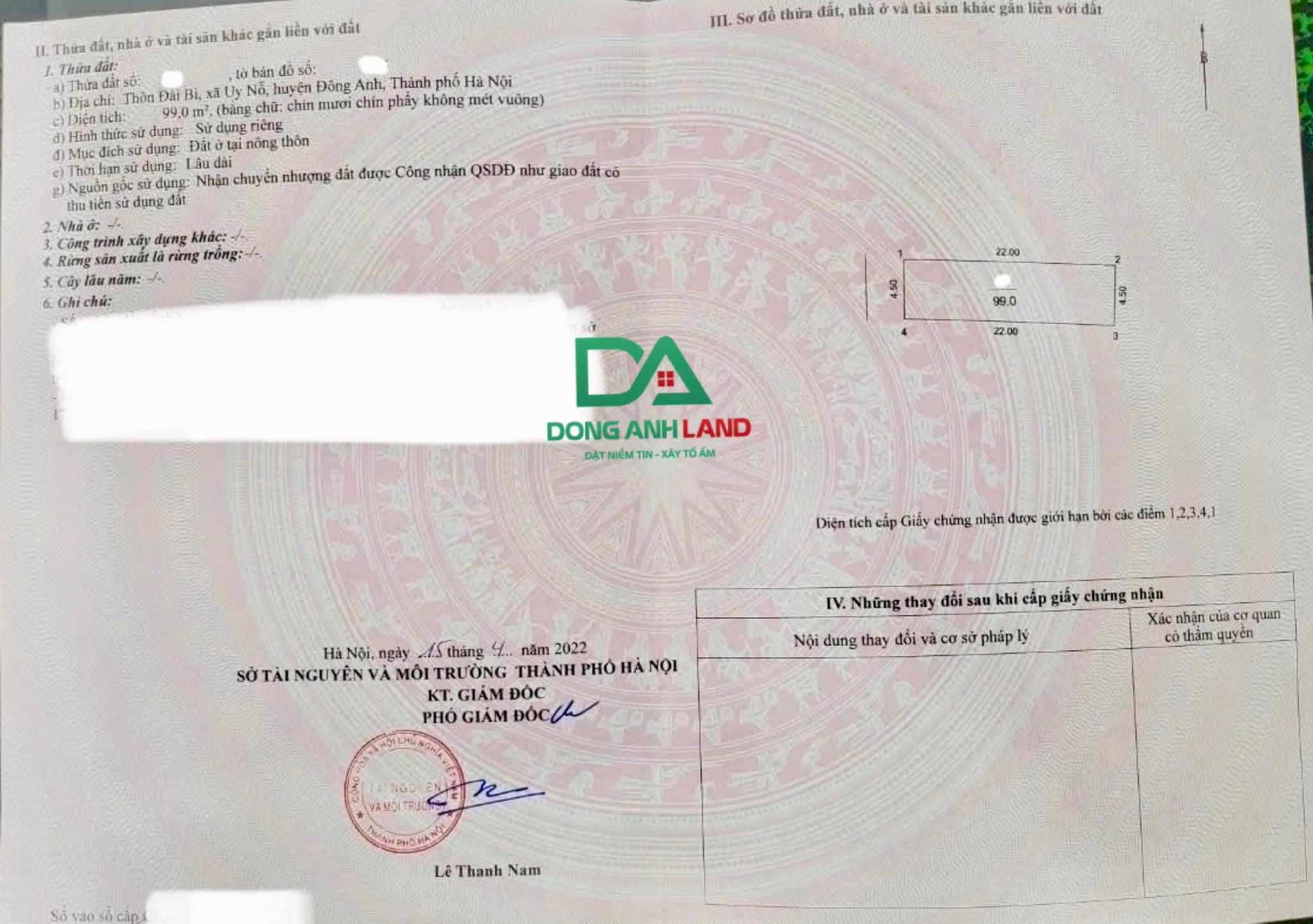 Bán 99m đất giá rẻ tại thôn Đài Bi Uy Nỗ Đông Anh