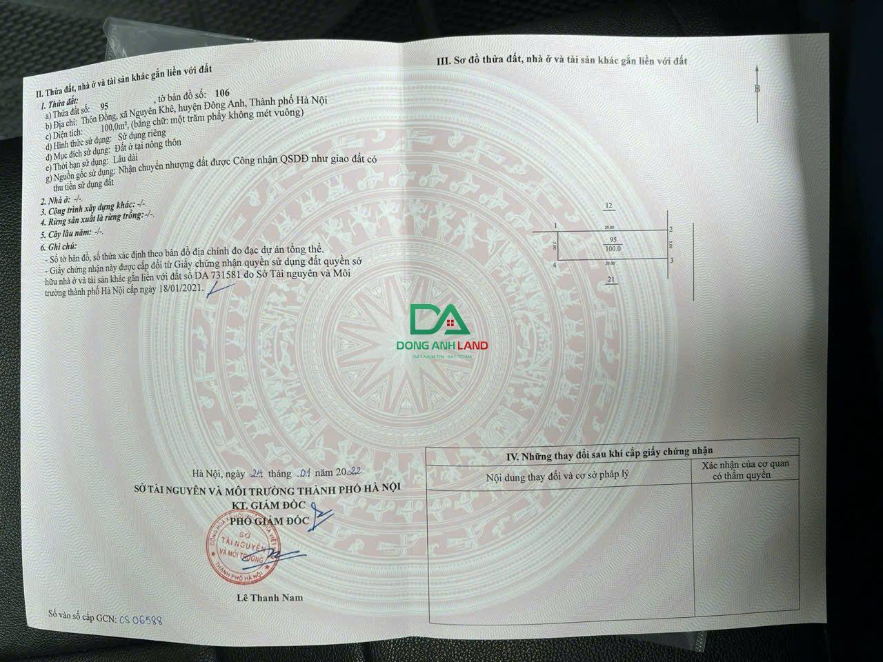 Bán 100m đất Thôn Đồng Phúc Thịnh Hà Nội (Nguyên Khê - Đông Anh) cách 30m ra đường 20m bìa làng.