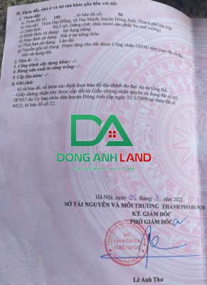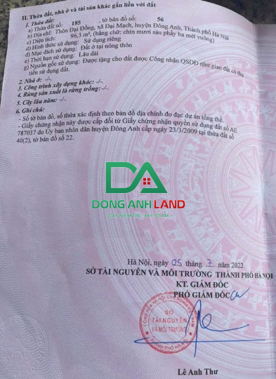 BÁN ĐẤT 96,3m² THÔN ĐẠI ĐỒNG ĐẠI MẠCH ĐÔNG ANH – GẦN CẦU THƯỢNG CÁT