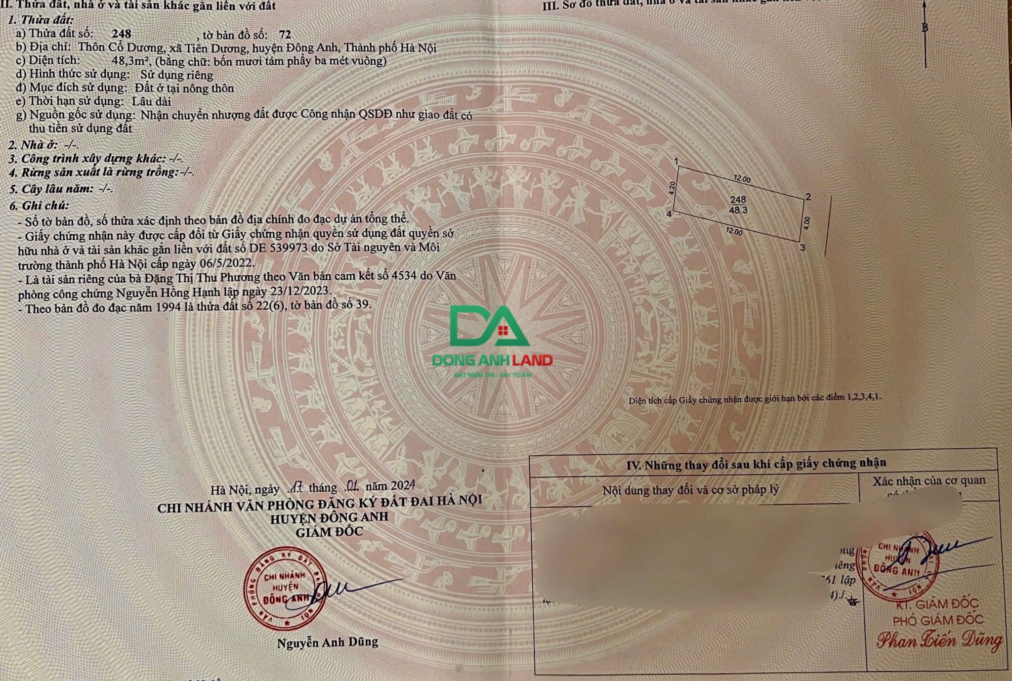 Bán đất Tiên Dương 48.3m thôn Cổ Dương gần trường Archimedes Đông Anh
