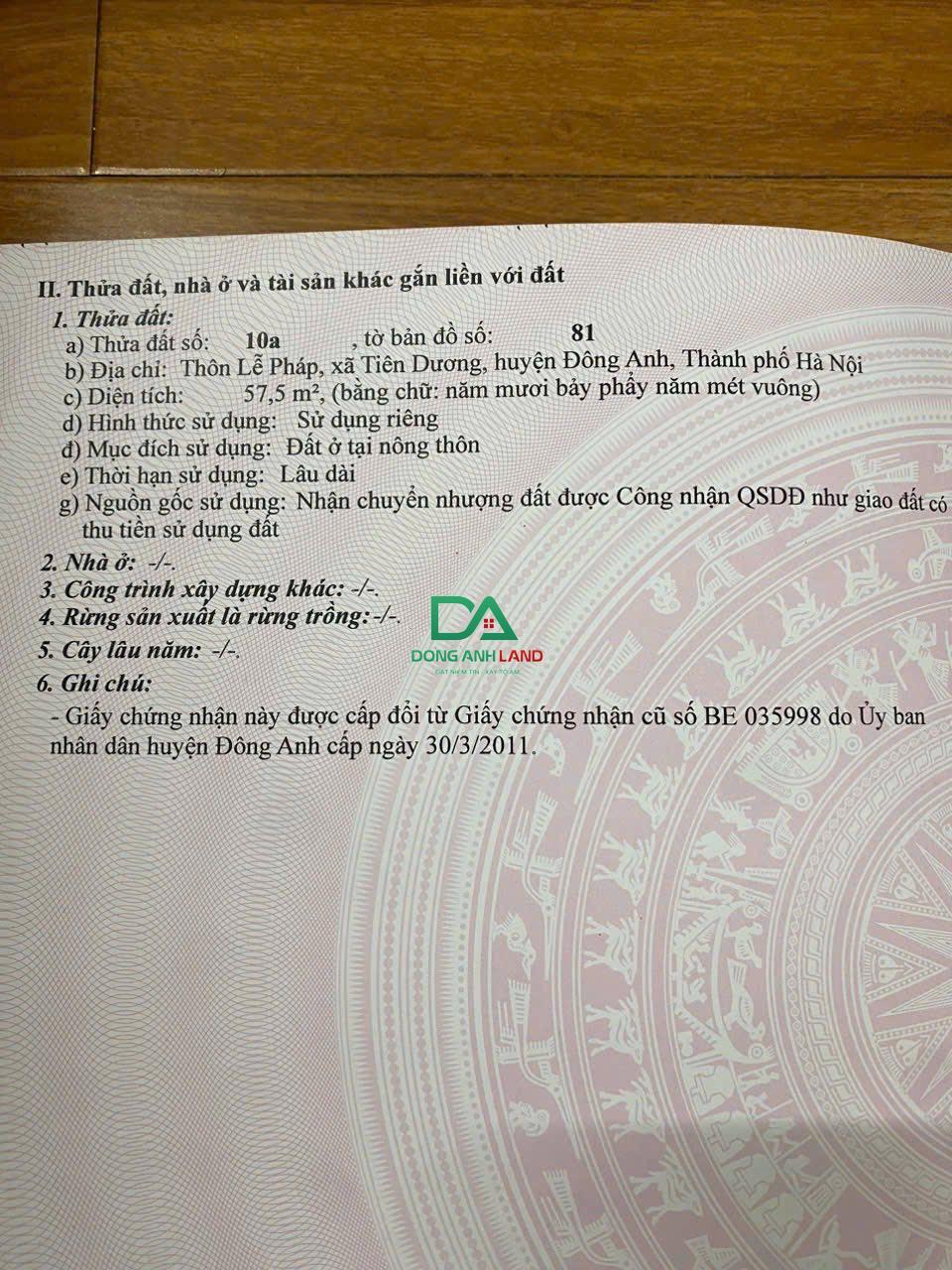 Bán lô đất chính chủ 57,5m tại Lễ Pháp Phúc Thịnh - Khổ đất vuông vắn - Ô tô đỗ cửa