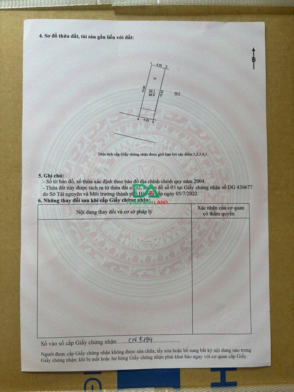 Diện tích 66,6m2 - Mặt tiền 4,25m