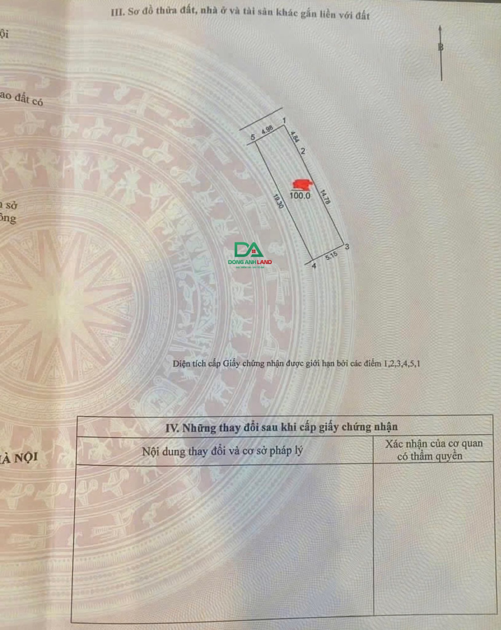 Diện tích 100m2, mặt tiền 4.98m