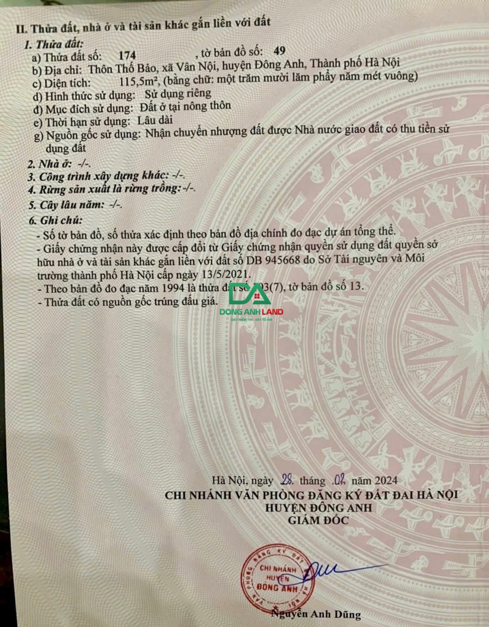 Bán đất Thổ Bảo Vân Nội Đông Anh diện tích 115.5m2 gần đường Võ Nguyên Giáp