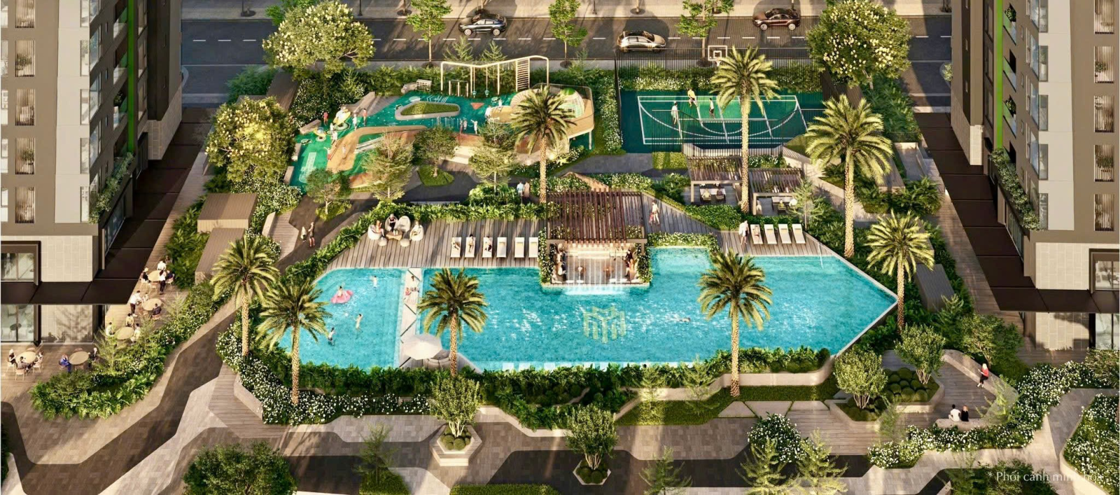 Hồ bơi, phòng gym, khu vui chơi trẻ em, công viên nội khu xanh mát.