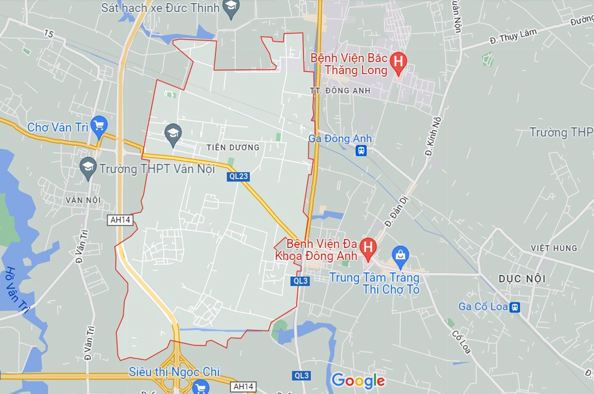 Xã Tiên Dương, Đông Anh, Hà Nội. (Ảnh chụp từ Google Maps).
