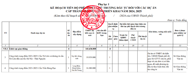 Đồng thời, trong năm 2024, Hà Nội cũng dự định khởi công dự án cầu Trần Hưng Đạo dài 5,6km cũng theo hình thức PPP, với tổng mức đầu tư dự kiến hơn 16.000 tỷ đồng. Qua đó, Thủ đô dự kiến nâng tổng số cầu bắc qua sông Hồng lên 18, nhằm giảm thiểu ách tắc giao thông và mở rộng mạng lưới hạ tầng giao thông đô thị.