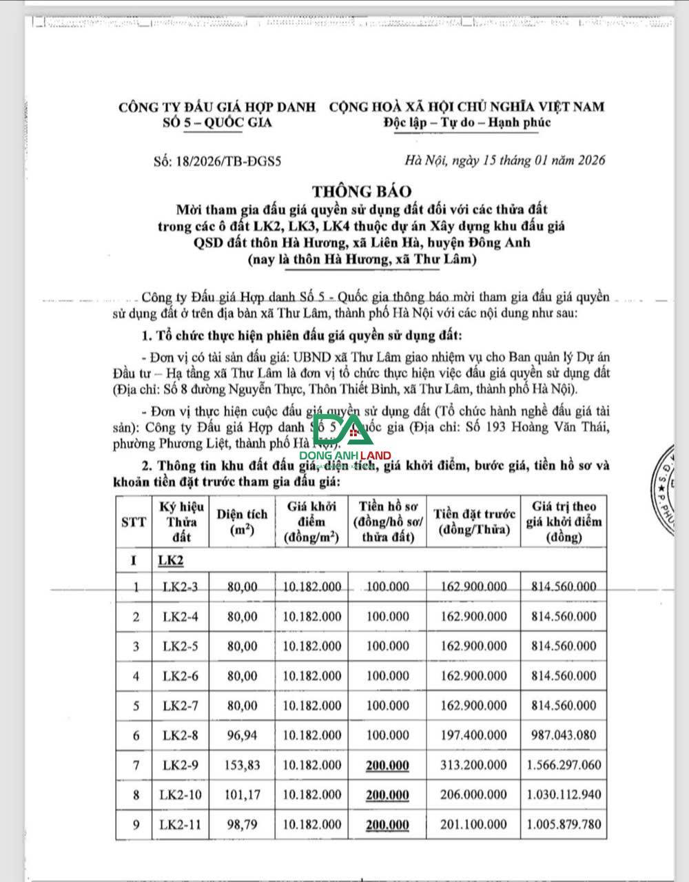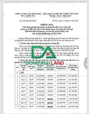 Đấu giá Hà Hương xã Thư Lâm, Xã Liên Hà, Huyện Đông Anh, Thành phố Hà Nội