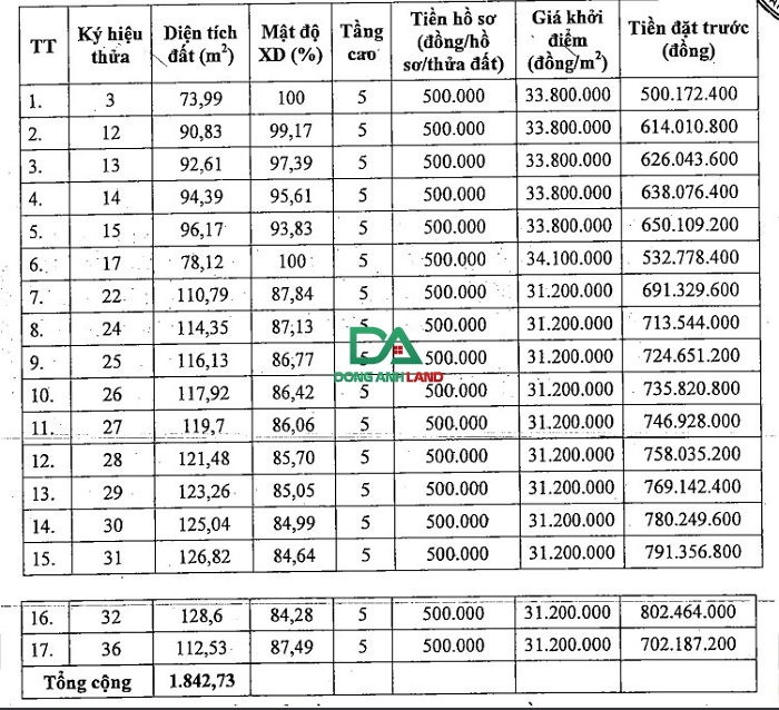 THÔNG TIN VIỆC ĐẤU GIÁ